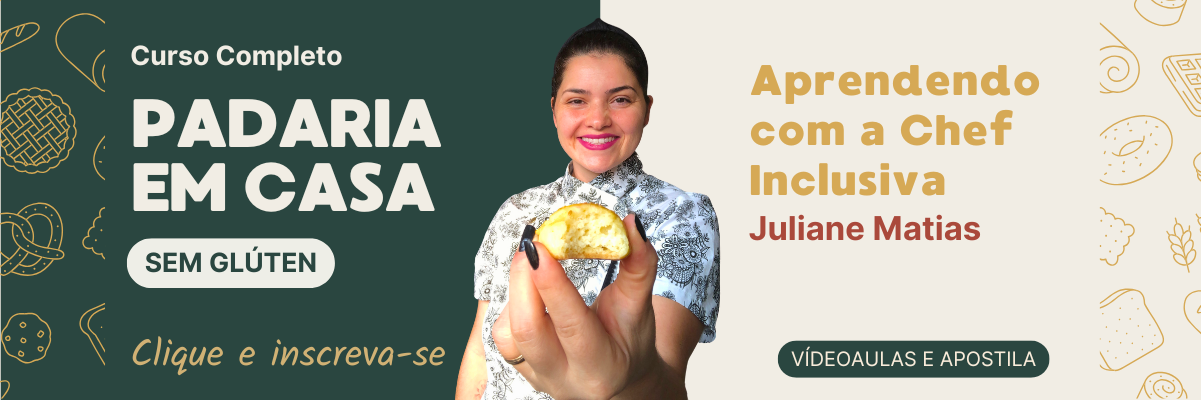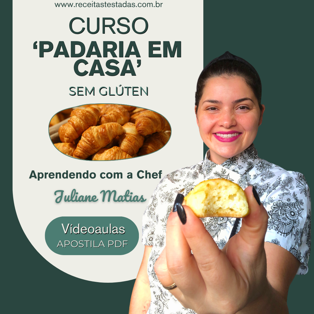 - 🔑 Mais de 60 vídeoaulas em um curso completo – pães, salgados e sobremesas sem glúten e sem lactose.